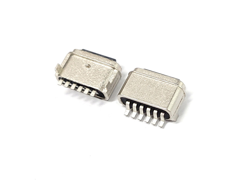 TYPE-C 6P防水母座 短體板上后兩腳插板帶定位柱 粉末冶金外殼 裸露端子