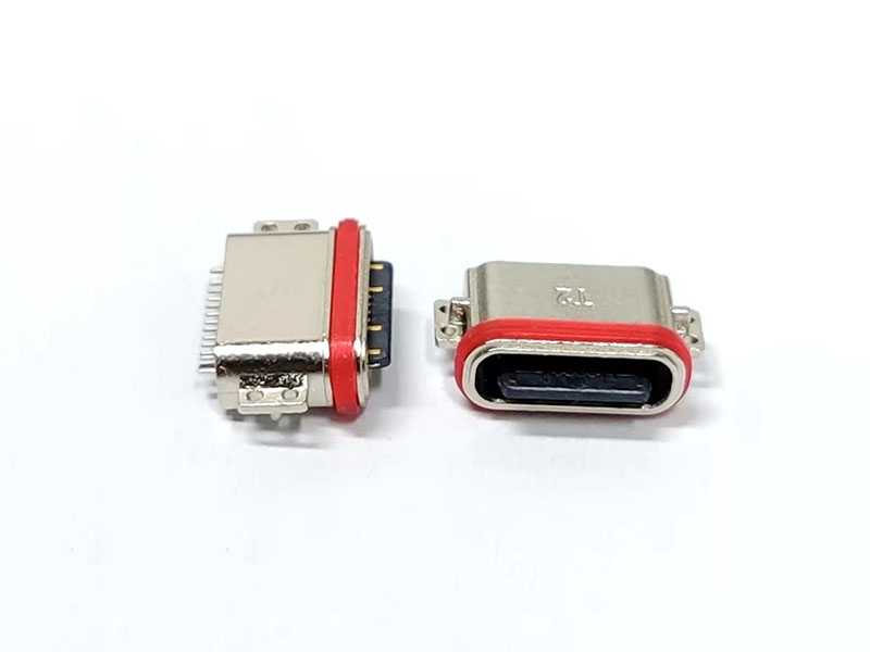 TYPE-C 16P防水母座 兩腳沉板0.8/1.2/1.6 U型口粉末冶金成品