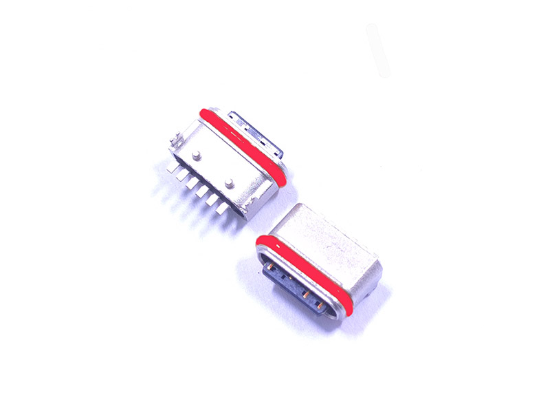 TYPE-C 6P防水母座 短體板上后兩腳插板帶定位柱 U型粉末冶金外殼 裸露端子
