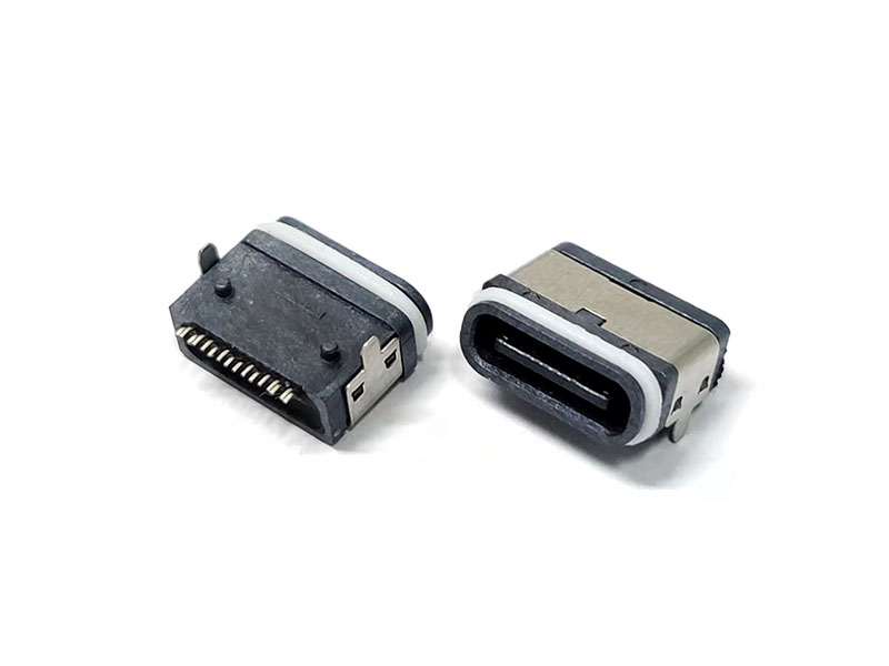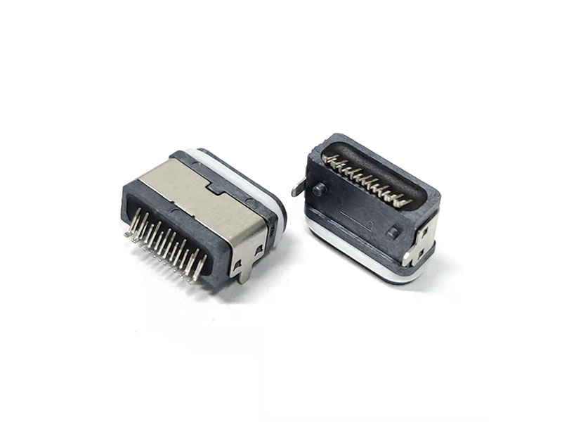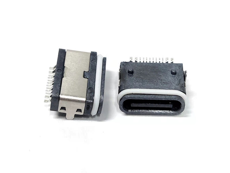 TYPE-C 16P防水母座 板上型全塑U型防水包膠圈款